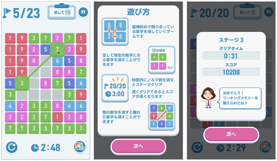 毎日プレイを続けることで楽しみながら脳のトレーニングにつながります。